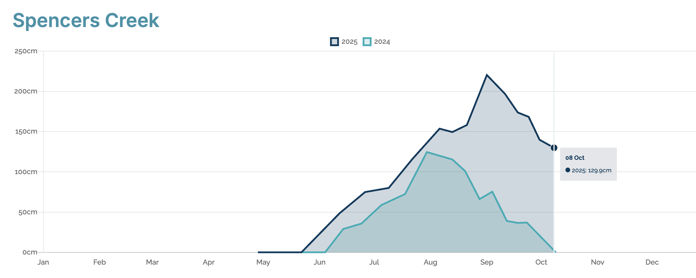 As you’d expect the base was at its deepest after that storm and on September 1st, Snowy Hydro’s snow depth at Spencers Creek was 220.4cms, up from 158.2cms on August 21s and the deepest since 2022.