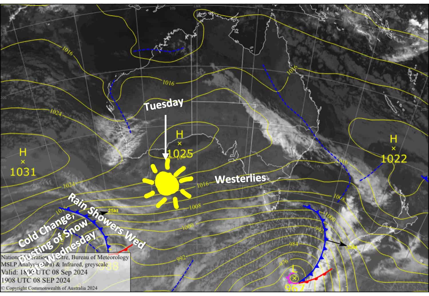 Australian Forecast, Monday September 9th – Another Short Pause to the Fastest-Meltdown-Ever Late Wednesday through Thursday