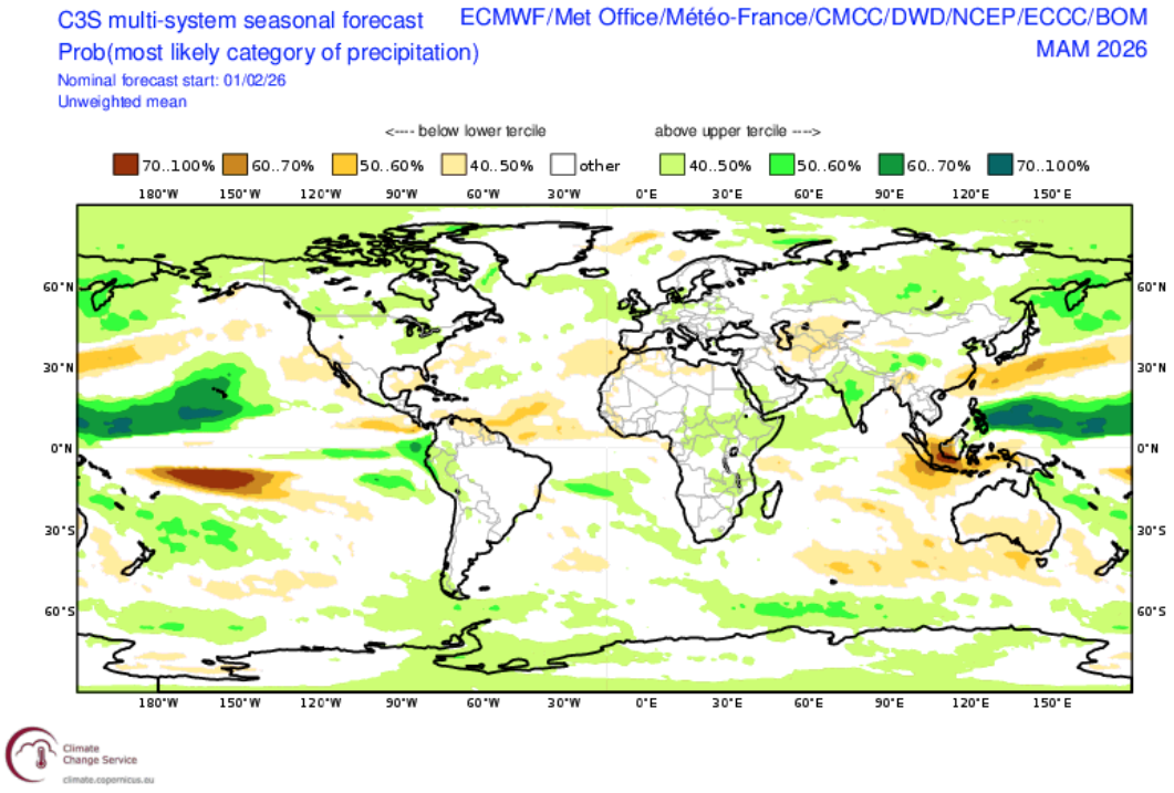Investigating this signal further, below is the latest three-monthly product showing precipitation. Important to note the three-month period of this chart begins at the start of March so they cover March through May. Also, another note is these plots take into consideration models from numerous different agencies so they should a middle ground which can be very helpful. We can see Japan as a whole sits in a neutral zone, bordered by some above average precipitation areas to the north and conversely below average to the south.