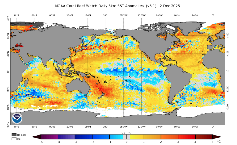 The Pacific Ocean is currently in La Niña conditions and we can see this characteristic pattern from the below daily SST anomaly (cooler Equatorial Pacific/collection of warmer waters in the Western Pacific). Remembering from our last update La Niña is typically good news for many resorts but importantly not all with the promotion of a northward shift in the storm track the pattern usually favours southwestern Candia areas and northwestern US areas. Th most likely forecast remains for ENSO to return to neutral throughout the second half of the season.