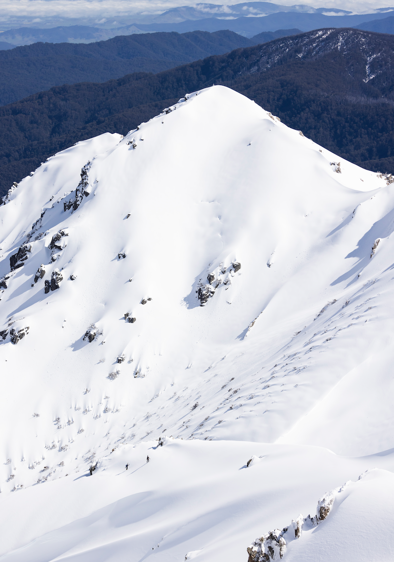 Not long after we made our way towards the Carruthers/Sentinel area and it was hard to imagine a better day. Here we were riding quality dry snow in late September on the Main Range with no wind. I was still stoking out on the warm up run and anticipation levels were high with the Sentinel in our sights. Considered the ‘Jewel of the Main Range’, this pyramid-shaped gem stands proud at the end of an arête ridge and as it came into sight, its summit looked pristine and untouched in the morning sun.