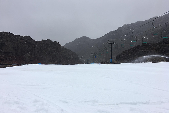 The snowguns working overtime on opening morning at Mt Ruapehu. Image:: Mt Ruapehu