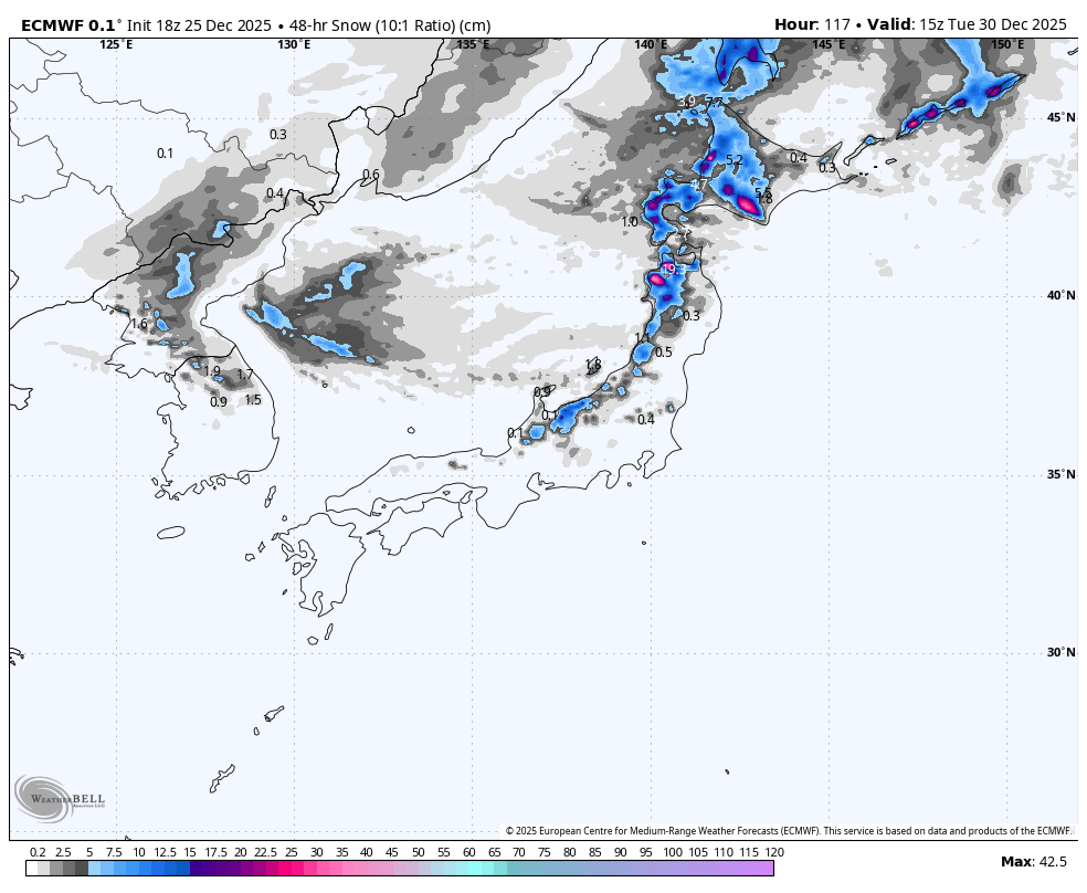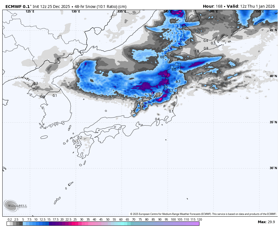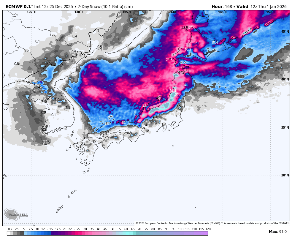 Weekly Japan Forecast – Big Boxing Day Special for Central Honshu, Persistent Snowfall Racks up in the North