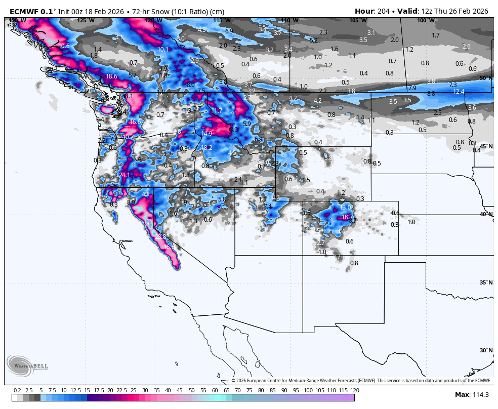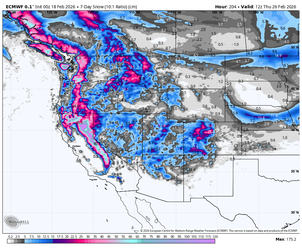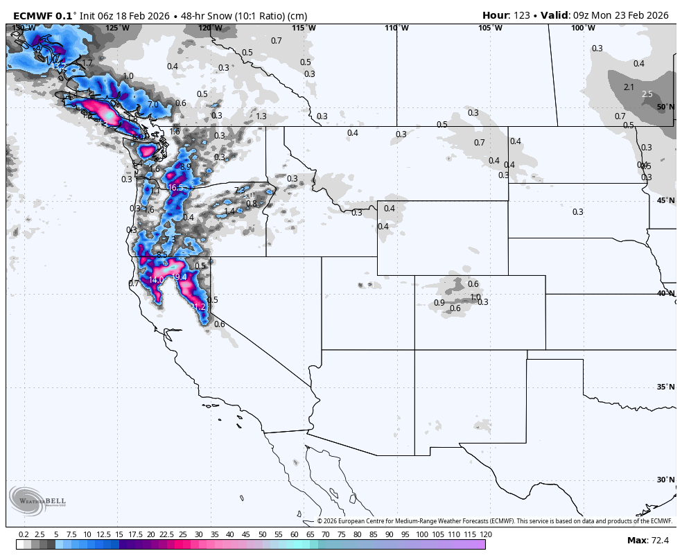 Weekly North America Forecast, Thursday February 19h – Powder Tap On Full-Blast as Storms Continue Across the West