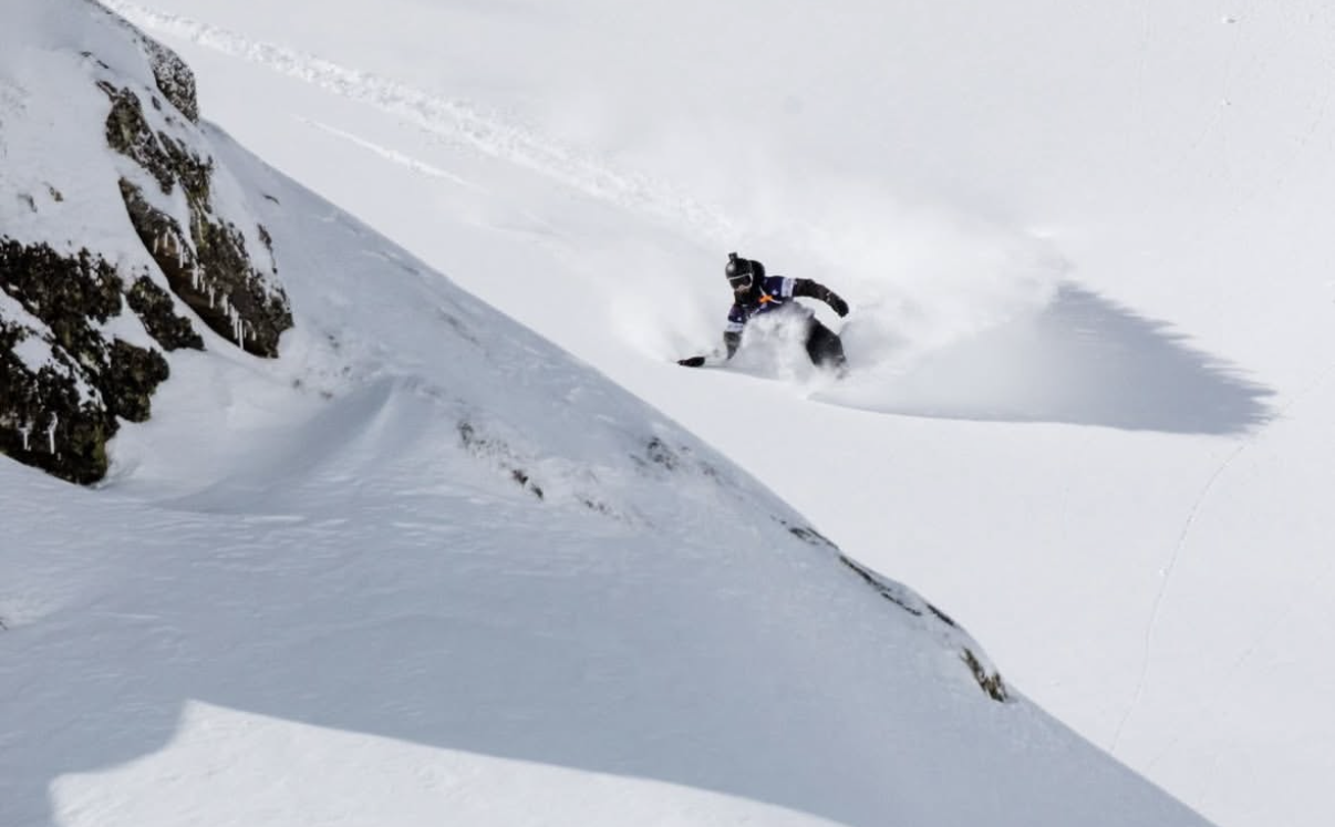 Australia’s Vaughn Hardwick laying it over during his run in the Freeride World Champs last week.  Photo: FWT