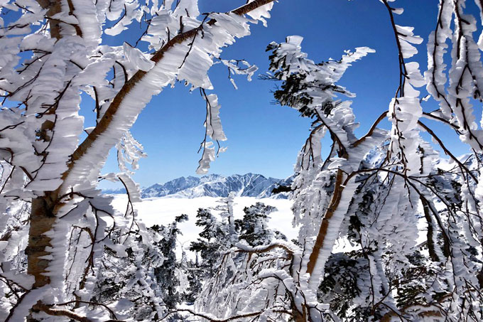 It has warmed up in hakuba, but overnight freezes have set up some nice spring snow in the upper alpine. Photo: Skiing with Steve Lee